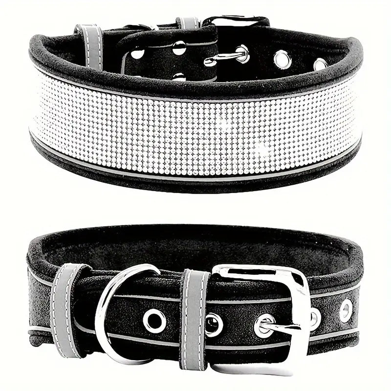 Turn your pup into the ultimate fashion star with our Sparkling Rhinestone Dog Collar! Designed for pets who love to strut their stuff, this collar features rows of dazzling rhinestones that catch the light beautifully, adding a touch of glam to every walk. Made with comfort and durability in mind, it’s fully adjustable to ensure the perfect fit — whether your furry friend is small, medium, or large.